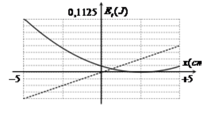 Câu 38: Một con lắc lò xo có đầu trên treo vào một điểm cố định, đầu dưới gắn vào một vật nặng dao động điều hòa theo phương thẳng đứng. Hình vẽ bên là đồ thị biểu diễn sự phụ thuộc của thế năng hấp dẫn và thế năng đàn hồi vào li độ x . Tốc độ của vật nhỏ khi đi qua vị trí lò xo không biến dạng bằng