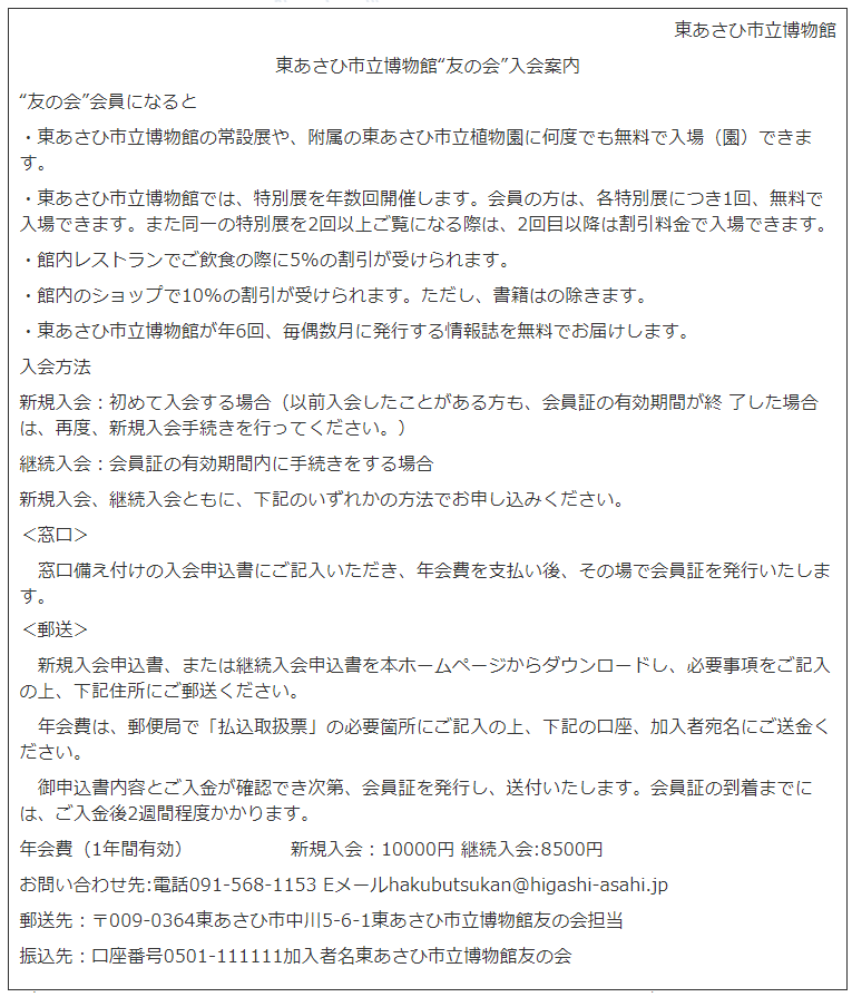 2.ノンさんは、家の近所にある東あさひ市立博物館の“友の会”の会員である。明後日21日に始まる特別展を見に行く予定だが、明日20日で会員期間が終了することに気がついた。21日に会員サービスが利用でき、年会費がより安く済む方法はどれか。