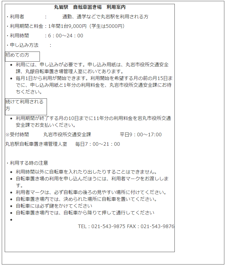 2.圈丸岩駅の自転車置き場を利用するときに、気をつけなければならないことは何か。 A. 自転車置き場から自転車を出せない時間がある。