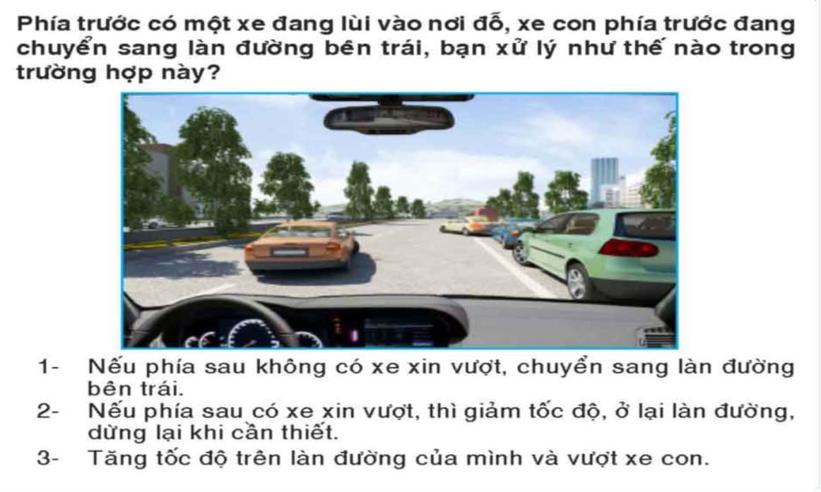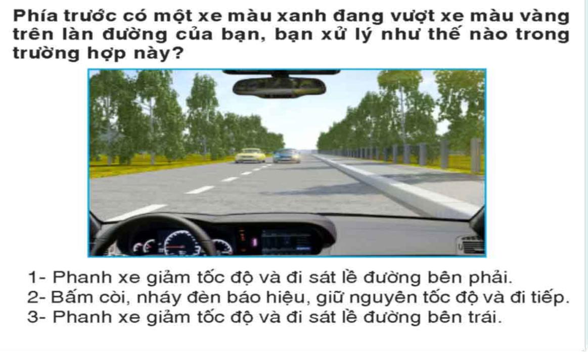 B. Khi cho xe chạy sau vượt.